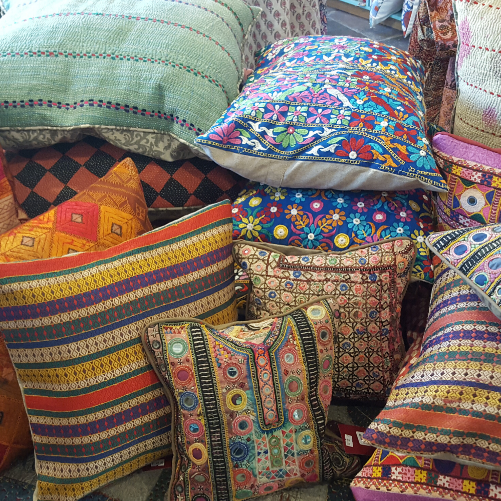 Some of our favourite pieces have been made from up-cycling unloved and unwanted cotton and silk saris into a beautiful collection of cushions and pillow covers.